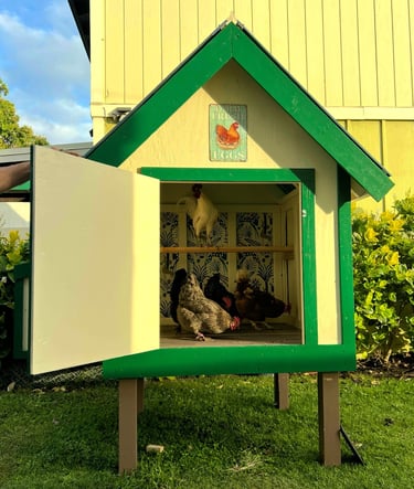 At Capps’ Custom Coops LLC, we create stylish, durable chicken coops tailored for you, ensuring your pampered flock live in luxury. Based on the beautiful island of Oʻahu, we specialize in crafting high-quality, custom-built chicken coops designed to suit your needs and Hawaii’s unique climate. Whether you’re a backyard farmer or just starting your flock, we’re here to provide durable, functional, and stylish coops to keep your chickens happy and healthy.
