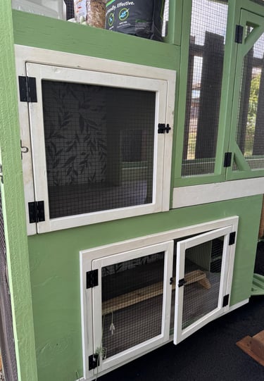 We start every custom coop with a personal consultation, because no two flocks (or backyards) are the same. Whether you are raising egglayers, show birds, beloved pets or even therapy chicken, we design with your specific needs and space in mind. Every build is one-of-a-kind, just like the chickens it’s made for.