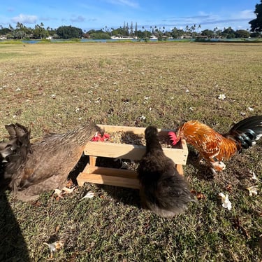 Our chicken playgrounds are built to last, providing a safe and entertaining environment for your flock, encouraging natural behaviors and ensuring your chickens thrive in Hawaii's beautiful climate.