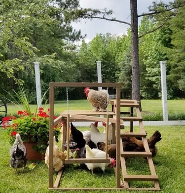 We create unique, engaging playgrounds for your chickens to enjoy, promoting their health and happiness while enhancing your backyard aesthetics with our quality craftsmanship and durable materials.
